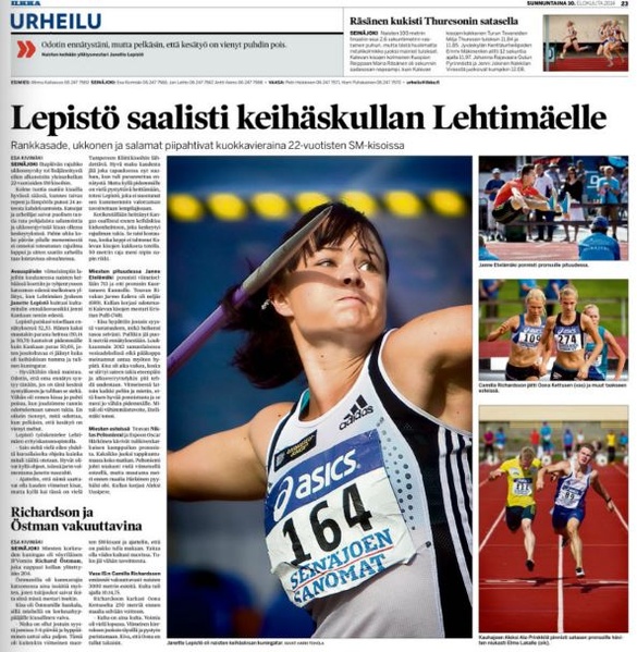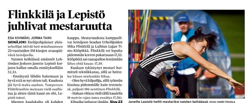 Janette valittiin Suomen edustajaksi alle 23-vuotiaiden EM-kisoihin naisten keihääseen. Toinen kisarajan rikkoja oli Lappeenrannan Saara Lipsanen. Miehistä rajan rikkoja oli Ylöjärven Joni Karvinen eli tämä kolmikko lähtee matkaan.