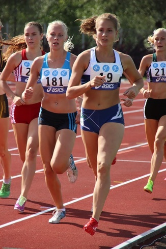 Jelena korkeimmalla, Janette toinen ja Leigh kolmas Viiskuntakisoissa
